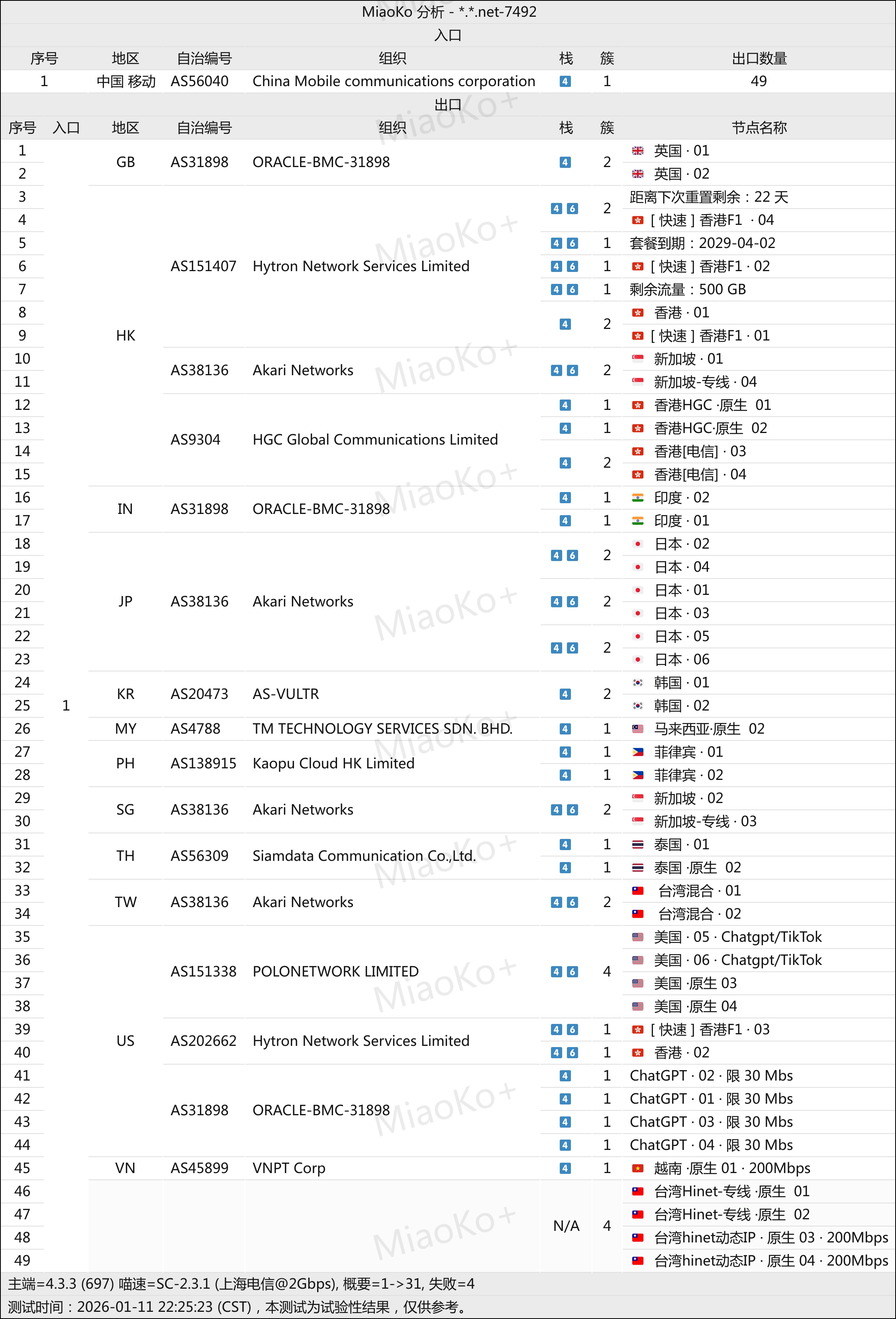 3年老机场了。Trojan协议中转线路机场。线路是G口湖南联通和广州移动。机场主在东南亚,不用担心跑路。在我监督下 ,更换了机器,测速好看了。单条2G带宽起。